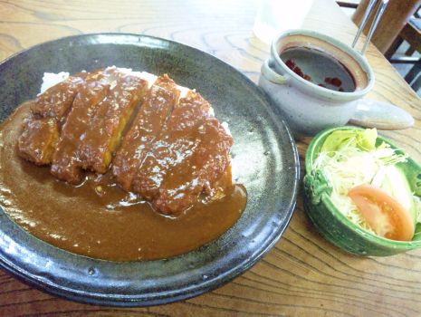 -ソロで行くプチ遠征記-『カツライス 見~~つけた♪(かねと食堂)』先日のブログの書き込みに、タナゴッチさんより「かねと食堂:その1・その2」さんにも"カツライス"があるとの情報をいただきました、、、なので本日は、ソロにまたがり調査に行ってきました。。。お客さんもまばらな2時過ぎに、暖簾をくぐりメニューを見ると、、、確かにっ! ありました、、、"カツライス:¥750"です!![カツライス(サラダ付):¥750]「かねと食堂」さんは前払い制なので、750円を払い席に着き、待つこと約10分、、、"カツライス"ができあがってきましたねぇ。。。しかもサラダ付です、、、また福神漬けは、別の容器に入れられていて、食べ放題(?)ですねぇ。。。[アップで]まず外観ですが、おそらくこれまで見た"カツライス"の中では、一番キレイではないでしょうか!? 盛り加減がなんともビューティフルです。。。で、気になるお味ですが、、、カツはやや厚切りで食べ応えあり、デミグラスソースは酸味より甘みが強く、かなり濃い味と強いトロミがあります、、、ご飯に混ぜるというより、ソースをトッピングする感じになりますねぇ。。。やや"カツカレー"にも近い感じがしますが、ソースの量も多めで、最後までカツ+ご飯+ソースで食べられました、、、かなりGOODな"カツライス"でしょう!![カツをアップで]が、あえて一言、、、カツに衣のサクサク感と、肉のジューシー感が少し弱い、、、結果、甘めのソースがのっぺらとした感じに思えてしまいます。。。まぁボリュームもある上、サラダも付いているので、バランスもよく、750円というお値段でも割安感はありますねぇ。。。最後に、、、もう一軒の未踏のお店、「プッチーニ」さんの"イベリコ豚カツライス"を食べに行きたいのですが、、、どうも男一人で入る雰囲気でないというか、、、小心者の私は二の足を踏んでいます。。。誰か一緒に行きませんか~~!!