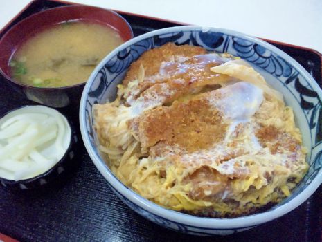 -ソロで行っていないプチ遠征記-『とまと食堂 で カツ丼』本日はお昼に鳥生方面に行く用があったので、一人で「とまと食堂:リンク多いのでたどってください」さんにやってきました、、、特に何が食べたかったワケではないので、たまには麺以外を、、、ということで"カツ丼"を食べてみましょう。。。[カツ丼:¥550]いつものようにお昼の2時ころでしたが、他にも一組お客さんがいました、、、それでも時間はさほどかからず、7、8分で"カツ丼"はできあがりました。。。[アップで]さて気になるお味ですが、、、ん~~っ、いたってノーマル、、、カツもまぁまぁのボリュームで、ほどよい揚がり具合です。。。卵とじの具は、"玉ねぎ"だけのようですが、結構多めに入っています、、、味付けはやや甘めで"ぼっかけ"に近い感じです。。。[カツをアップで]ただ、ご飯の量が多い、、、最後の方は出汁が足りなくなってしまいました。。。また欲を言えば"三つ葉"や"キクラゲ"など、彩りがあるとイイんですけどねぇ、、、まぁ"みそ汁"つきで550円なので、食堂の"カツ丼"としては、なかなか頑張っていると思えますネっ!