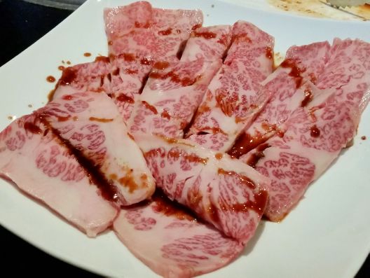我々はまず9品の"よくばり盛り"をお願いして、"タン塩"や"上バラ"、"忠カルビ"などを単品注文です、、、おおぉぉぉ、"上バラ"も"忠カルビ"も、フリフリの霜降りで脂もにじんでいます。。。うんうん、柔らかい、、、うんうん、旨い旨い~☆