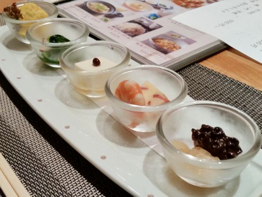 [前菜、茄子豆腐、冷し茶碗蒸し]