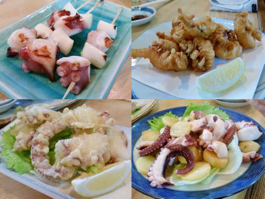 [たこネギ、下足唐揚、たこバター、たこ天]