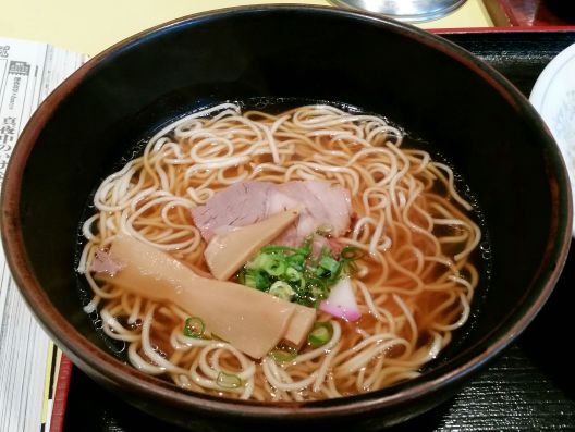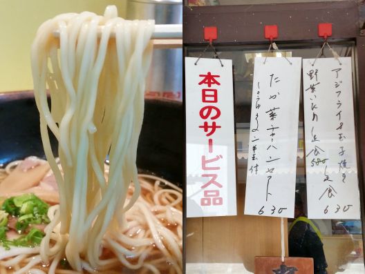 次に"しょうゆラーメン"。。。麺はやや細めで中加水、ゆで加減は固めでクニクニとウェーブしています、、、"たか菜チャーハン"がボリューミーなので、この半玉がちょうど良いですネっ!!