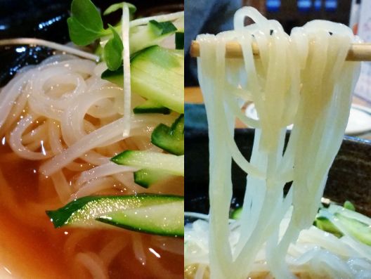 そうそう麺ブロガーとして、"もりおか冷麺"を見過ごすワケにはいきません、、、今日のコースとは別注でお願いしました。。。ほぅほう、小麦粉とでんぷんのストレート麺は、ツルツルシコシコで良い食感です、、、またピリ辛で少し酸味+甘みのあるスープも美味しいっ!!