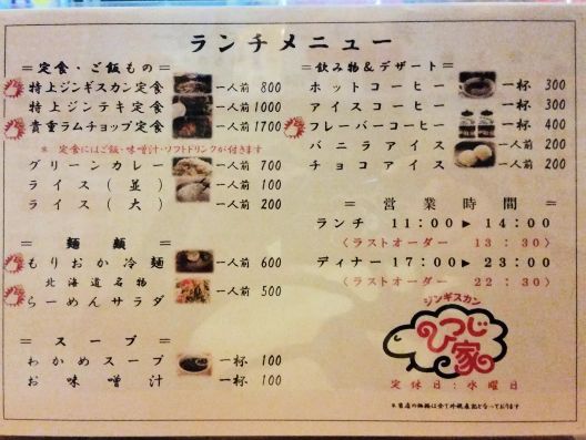 「ひつじ家」さんは名前の通り、羊の肉をいただく"ジンギスカン"のお店です、、、このお店の大将は、約30年間北海道に住んでいたということでした。。。