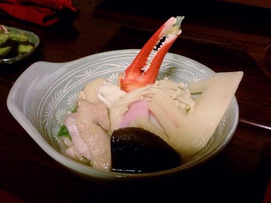 なのでメインはドカンと"うどんすき"、、、このブッチョイうどんが美味しいんです。。。また具材には"親鶏"や"うずら"の他に、海鮮類もタップリ入っています、、、"カニ"や"帆立"、"あさり"や"烏貝"などなど。。。うんうん、旨い旨い~☆