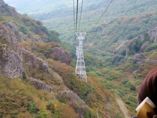 ここから山頂へはロープウェイで登るのですが、たくさんの行楽客がいます、、、でも半数は外人で、中国語や英語が日本語に混じって聞こえてきます。。。またロープウェイは満員電車状態、、、ギュウギュウで外も景色もあまり見られませんでした。。。