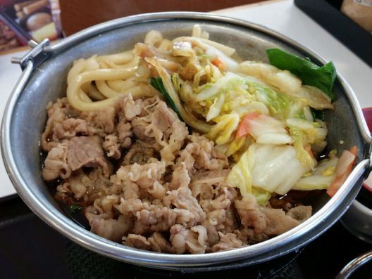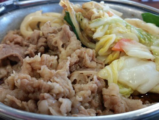 さぁ気持ちを切り替えて、気になるお味です。。。うんうん、肉2倍盛なので、鍋から肉が溢れ出しそうです、、、白菜やネギ、豆腐にうどんも入っています。。。でもこの白菜、ちょっとしなびています、、、はいはい、これは"おしんこ"の白菜ですねぇ。。。
