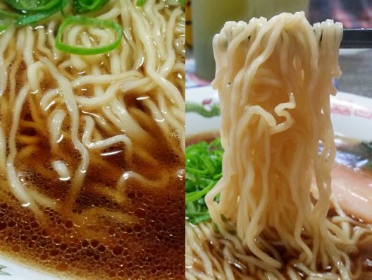 さぁ気になるお味です。。。まず麺はカクカククニクニウェーブの細麺で加水は中位、シコシコの食感です、、、40秒の固茹でにしたので程よいコシも感じられます。。。そしてスープは少し濃いめの醤油味ですが、ほんのり甘い風味もありますねぇ、、、ベースは鶏か豚のような気がしますが、かなり胡椒系の香辛料が効いていてよくワカリマセン。。。私的にはもう少し香辛料が控えめの方が良いなああぁぁぁ。。。
