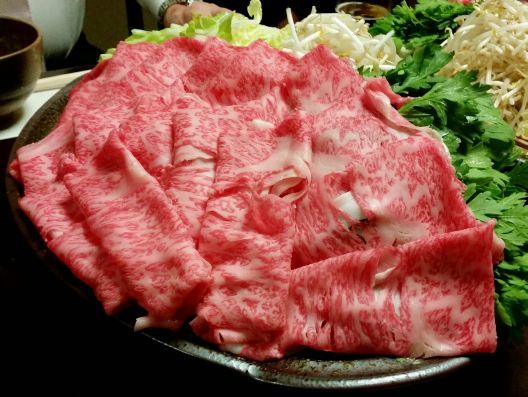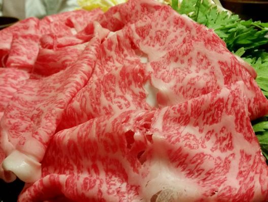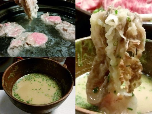で、その霜降り肉をグツグツのお湯でしゃぶしゃぶ、、、程よいピンクの色が残っているくらいで、"秘伝のたれ"にくぐらせいただきます。。。おおぉぉぉ、、、トロける~~っ!! 甘い甘い~~っ!! 旨い旨い~☆