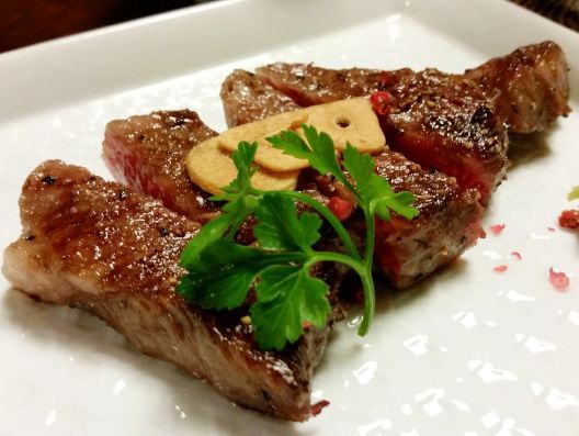 それから今夜は豪華版ということで、"ステーキ"も出してくれました、、、おおぉぉぉ、さすが「白鳥」さんの"ステーキ"です、、、A5ランクの和牛でしょう。。。焼き具合はミディアムレア位かな??? 甘い肉汁がジュワっと溢れ、ウマウマ~~♪