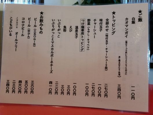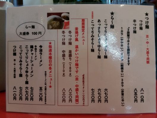 そうそう、メニューを見るまで気づかなかったのですが、期間限定メニューで"冬つけ麺"が始まっていました、、、釜揚げ風の温かいつけ麺ですねぇ、、、かれこれ5年くらい食べていません。。。また食べにいかなくっちゃ!!