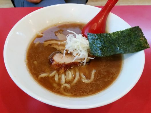 さて私は冬場になって始まった"こってりみそら~麺"を、"味付玉子"トッピングで、、、PONSI君には初めてなので、"こってりしょうゆら~麺"をオススメしました。。。すると"チャーシュー"トッピングの食券も買ったようです。。。