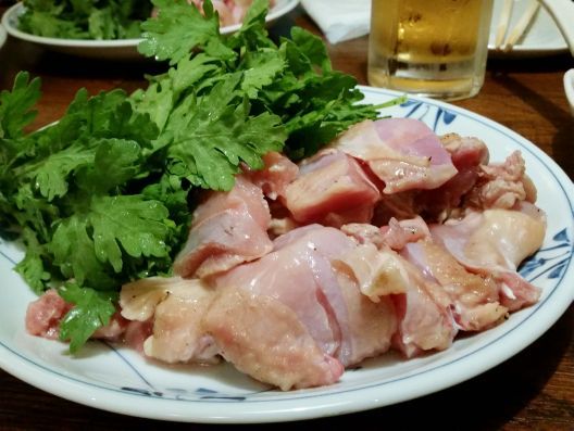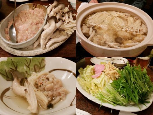 店内に入り靴を脱いでフローリングの部屋に案内されます、、、テーブルには鍋の用意がありました。。。乾杯後、最初の料理は"塩ちゃんこ鍋"の出汁に、鶏つくねと茸を入れていただきます、、、おおぉぉぉ、、、この出汁、美味しいっ!! また鶏つくねには生姜が入っていて、身体がポカポカ温まってきました。。。