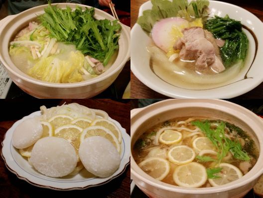 次に、一端炙られた鶏肉と野菜類で"塩ちゃんこ"をいただきます、、、ほうほう炙られた鶏が芳ばしい香りを放ち、これまた絶品の鍋になっています。。。そして鍋の〆は、レモンを浮かべた極太うどんです、、、うんうん、旨い旨い~☆