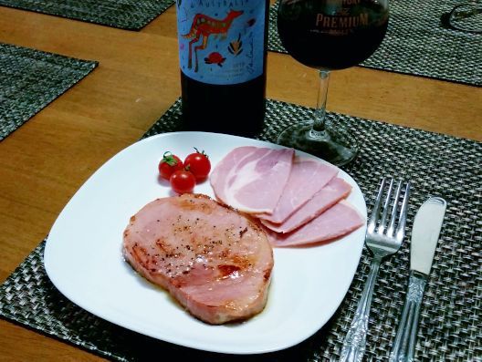 そのハムステーキは、オリーブオイルで両面を、焦げ色がつく位の約1分焼き、粗挽きペッハーをふりました、、、ヨシヨシ、良い具合に焼けています。。。
