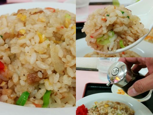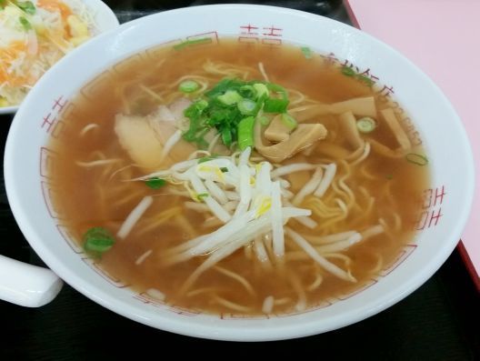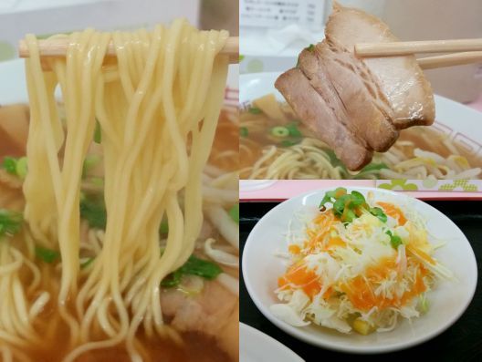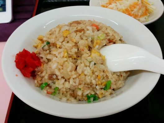 暖簾をくぐり店内のカウンター席につき、今日は"ラーメン"+"焼飯"+"サラダ"の"Bセット"を注文してみました、、、そう言えば「重松飯店」さんで、ノーマルの"ラーメン"と"焼飯"を食べるのは、初めてかもしれません。。。やがて待つこと約7分、、、注文ができあがりました。。。