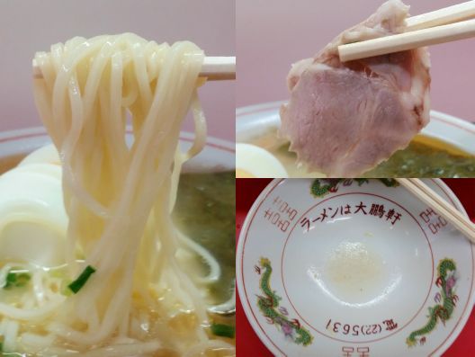 さぁ気になるお味です。。。麺は中細で加水多めのほぼストレート、やや角があるタイプです、、、ゆで加減は固くも柔らかくもなくでしょう。。。そして何と言っても「大鵬軒」さんはスープがGOOD!!