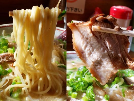 さてさて、とにかく気になるお味、、、私は"ラーメン"。。。まず麺は細めの四角い断面、加水もやや多めの手もみ風、緩やかウェーブほぼストレート、、、ゆで加減は、、、うーーんっ、ちょっと柔らかめかなあぁぁぁ。。。ひょっとしたら、スープがアツアツなので、温度で少しのびたのかもしれません。。。