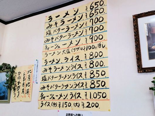 ただ店前に行列は無かったものの、店内には2組位の待ち人がいました、、、なので我々も待って、2時45分頃に席に着けました。。。お店は頑固そうな大将が一人でされているようで、貼り紙には"無愛想じゃけん"と書かれていました、、、逆にそれが愛嬌があるように感じ、一人ほくそ笑んでしまいました。。。(笑)