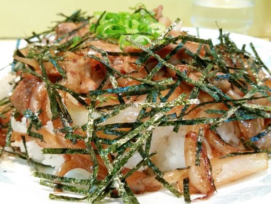 さぁ気になるお味です。。。まず見た目は"ゴリラの頭"みたいで、ご飯の上に焼肉がトッピングされた、"焼肉丼"のような感じです、、、ご飯は軽く炒められているような芳ばしさも感じるのですが、コショーが振られています、、、その上にお店オリジナルの甘過ぎないタレで、玉ねぎと一緒に炒められた牛肉が乗り、刻み海苔もまぶされています。。。うんうん、食べれば食べるほど"焼肉丼"ですねぇ、、、でも、旨い旨い~☆