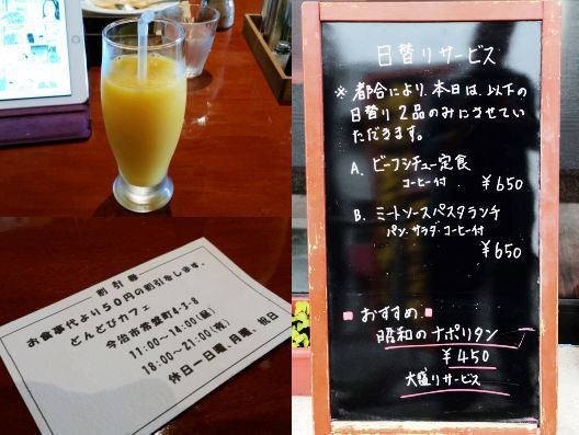 今日のお昼は「呑吐樋(どんどび)カフェ: その1 その2 」さんに行くことにしました、、、前回の訪問時にいただいた、"50円割引券"がありましたからねぇ。。。