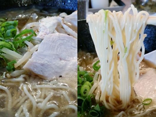 そしてよく冷えたスープは、鶏ガラ系の醤油味、、、アッサリながらもパンチのありますねぇ。。。また奥の方で焦がしニンニクっぽい芳ばしい風味もしてきます。。。