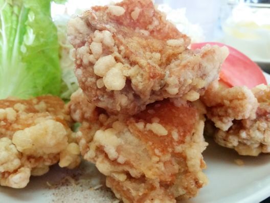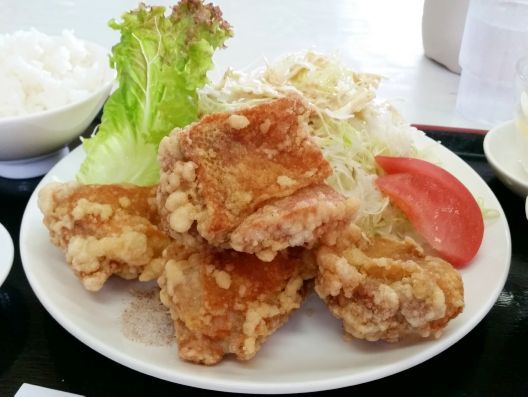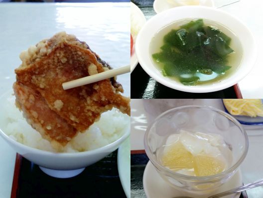 さて入店したのは午後1時過ぎ、、、店内には一組のお客さんが座っていました。。。私は席に着くと、迷わず"からあげ定食"を注文です、、、ただ「珠鳳」さんの"からあげ"はボリューミーなので、ライスを小にしてもらいました。。。そして待つこと約20分、、、注文のできあがりです。。。
