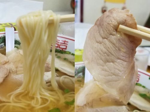 さぁ気になるお味(中華そば)です。。。まず麺は素麺かと思えるくらいの、多加水極で細ストレート、ゆで加減は固くも柔らかくもなく、、、ツルツルシコシコっとした喉越しです。。。そしてスープは、鶏ガラ+イリコ出汁だと思われます、、、すごくアッサリでうどんの出汁のようです。。。一応醤油味ということですが、、、塩味のような優しいスープですねぇ。。。