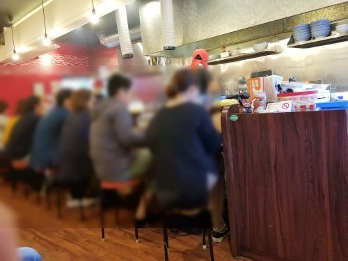 さて到着した店前には、お昼時とあってすでに数組の行列ができています。。。駐車場も満車でしたので家内に列並んでもらい、私は駐車場が空いてから合流です、、、そして待つこと約10分で、カウンター席に案内されました。。。席に着いた私は"醤油らーめん"を"セットB(半チャーハン)"で、、、家内は"わかめらーめん(三陸産わかめ使用)"を注文です。。。厨房では店主さんが麺を茹ででいて、テボを頭の上から振る、所謂"天空落とし"で湯切りしています、、、やがて待つこと約8分で、注文ができあがりました。。。