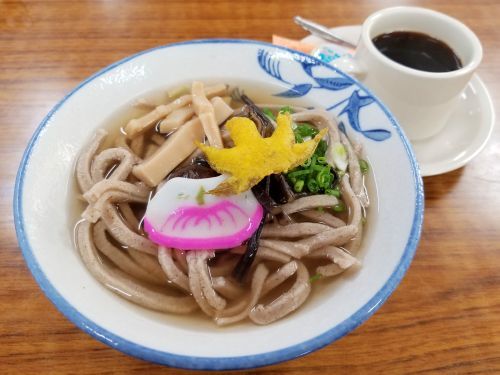 なので"月より団子"ではありませんが、"紅葉より蕎麦"です、、、この時期にだけ地元の「べふ保勝会」が運営する「もみじ茶屋」に入店しましたねぇ。。。そして私は名物という"もみじそば"をお願いし、家内はお腹が減っていないので"コーヒー"をお願いしました、、、やがて待つこと約3分、、、注文のできあがりです。。。