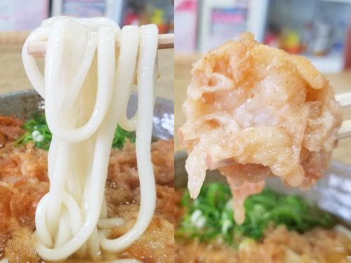 さぁ気になるお味です。。。まずうどんは、やや細めの今治食堂風のフニャフニャ腰ヌケタイプ、、、少しだけ弾力がありますが、舌で切れちゃうヤワ麺です。。。そして出汁は、おそらくイリコ系だと思われれる優しくアッサリの出汁、、、うんうん、これが老舗の味ですねぇ。。