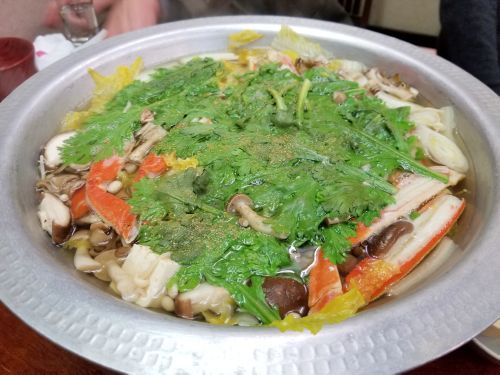 まず刺身やアン肝、、、オコゼ唐揚げ、そして瀬戸貝&牡蠣などが運ばれてきました、、、すでにこの時点でお腹がイッパイ。。。でも今夜のメインはカニ鍋です!! この食材は、私の足の爆弾の起爆剤だらけです、、、うーーんっ、明日の朝が心配だなあぁぁぁ。。。でもでも、うんうん旨い旨い~☆