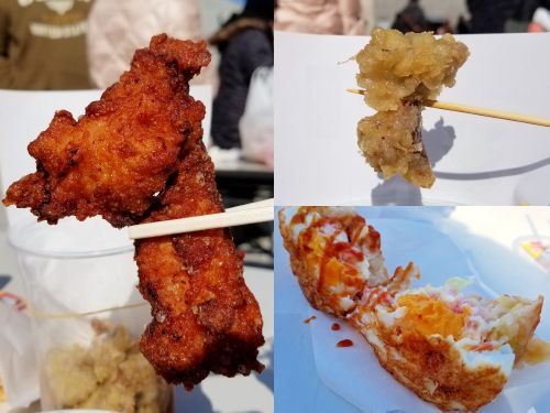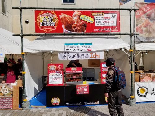 さて10時過ぎに到着しましたが、9時開場の会場内には、すでに多くの人が集まっています、、、私は上記の友人出店の"ナイスザンギ"のブースに顔を出し、"ナイスザンギ"を購入しました。。。
