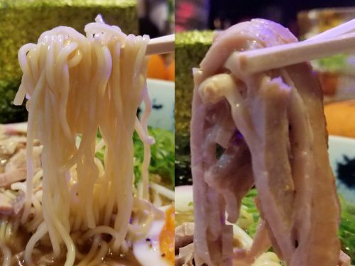 さぁ気になるお味です。。。まず麺は中細で中加水のクネクネウェーブ&モチモチタイプ、、、ゆで加減は固茹ででGOODでしょう!! そしてスープは、、、うんうん、(後でズンドウを拝見しましたので)豚骨や野菜が長時間煮込まれ、しっかりしたコクのある醤油味かな? トッピングのトロトロチャーシューも自家製だと言うことです。。。うんうん、旨い旨い~☆