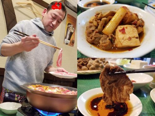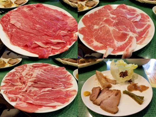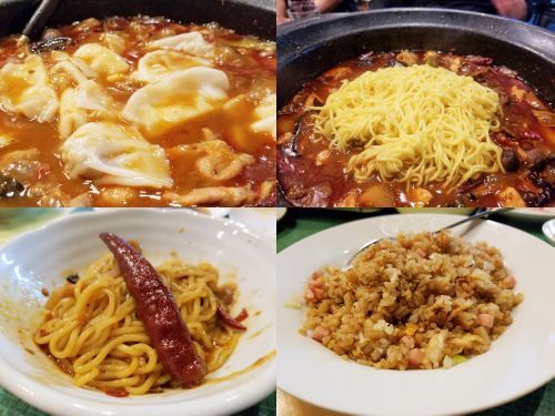 さてそんな"火鍋"に牛肉や豚肉、羊肉を投入、、、タレにつけてつけなくてもよいのですが、とにかく、かっ、かっ、辛゛い゛~~っ!! 食べるにつれ、だんだん口内の感覚が無くなっていきます、、、でも箸が止まりません。。。ワタンタンやギョーザー、、、そしてシメは麺を投入です。。。うんうん、旨い旨い~☆
