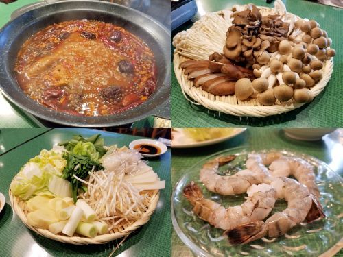 今回のメニューは前回訪問の際に気に入った、"火鍋"を用意してもらっていました、、、入店してテーブルに着くと、すでに地獄のような赤色でグツグツと煮込まれていて、キョーレツに辛い香りが漂っています。。。