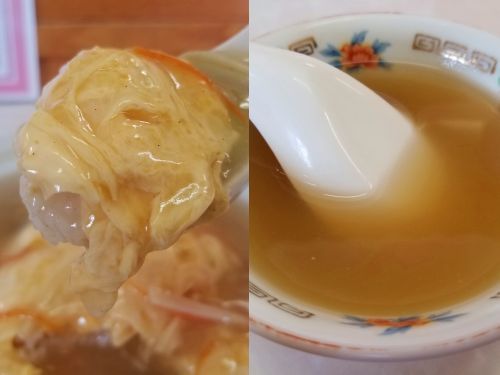 で、気になるお味は何度も食べている、、、と言うか、「福寿園」さんでは3回に1回は"天津飯"なので、 過去記事 をご参照ください。。。私は「福寿園」さんのフワフワ卵が好きなのですねぇ。。。うんうん、旨い旨い~☆