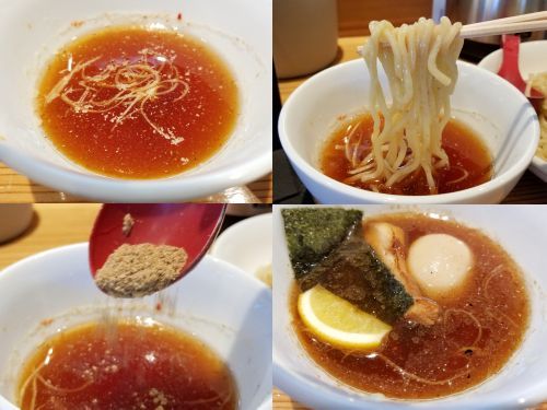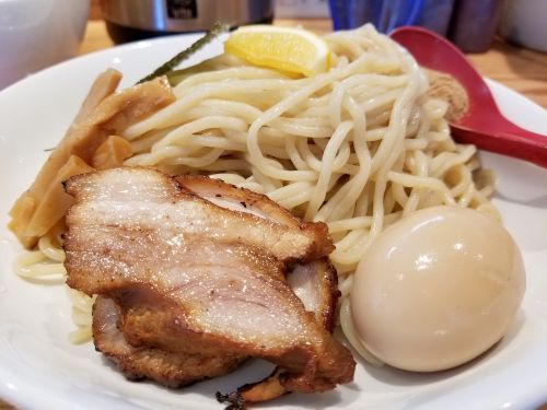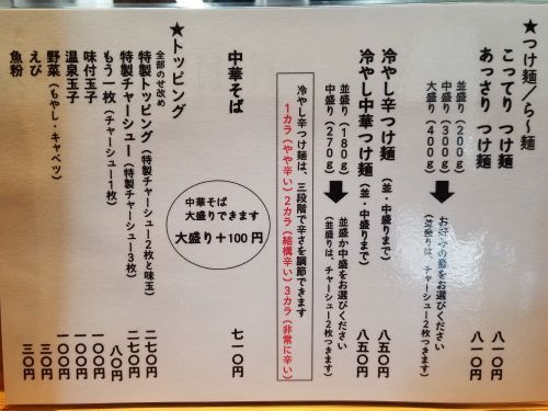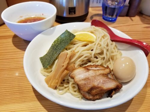そしてつけタレは、酸味とややピリ辛感のある、あっさり爽やかなタイプで、サラサラっと麺が流れ込んで来ます、、、途中で"魚粉"やチャーシュー、メンマ等を入れ、コクとボリュームを持たせて、再度麺を投入。。。うんうん、旨い旨い~☆ 当然シメは出汁の効いたスープ割でいただきます。。。うんうん、完食完食、、、うんうん、満足満足~~♪
