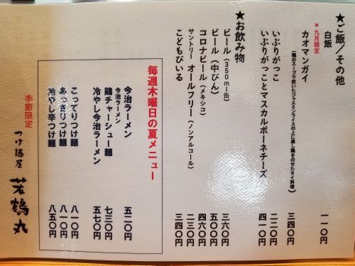 「若鶴丸」さんは「 麺屋武吉 」さんの夏場バージョンのお店です、、、なんでも今月7月22日で、開店( 旧店舗 )から10周年を迎えられたそうです。。。