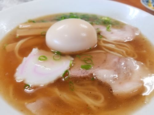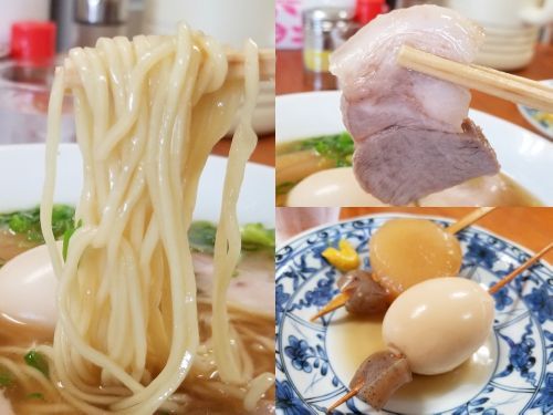 さて午後1時半ころに暖簾をくぐると、遅い時間のためかお客さんはいませんでした、、、私は"中華そば"をお願いして、"おでん"を二本取って待つこと約3分でできあがりです。。。