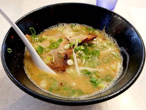 入店したのは午後1時半ころ、、、店内には6、7人のお客さんです。。。一人の私は大テーブル席に着き、"とんこつ味噌ラーメン"を"Bランチ(ごはん)"でお願いしました、、、そして待つこと約6分、注文のできあがりです。。。