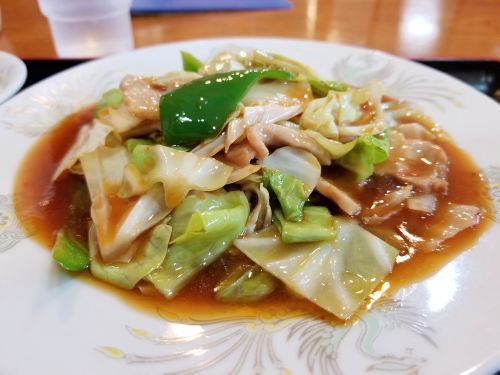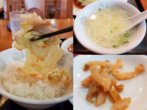 さて朝がラーメンだったので、中華でもご飯モノの定食系の口でした、、、なので"回鍋肉定食"を(定食のご飯は量が多いので、少なめでお願いして)注文です。。。そう言えば定食で、自分から"回鍋肉"をチョイスしたのは初めてかもしれません、、、やがて待つこと約6分でできあがりました。。。
