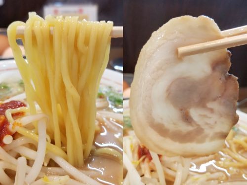 そしてスープは「光屋」さんの豚骨ベースのコクをしっかり残し、風味豊かに味噌が香る絶妙のバランス、、、しかも今年はBARI人好みの、やや濃いめです!! その濃いコク味噌豚骨のスープが、太麺にちょうど良い具合に絡んでいます。。。またトッピングは、チャーシュー、辛子味噌、タップリのシャクシャクもやし、ネギで、途中から一味唐辛子を足して、ピリ辛を少し加えます、、、うんうん、今年も良い出来映えっ!! うんうん、旨い旨い~☆