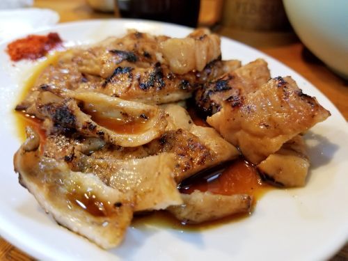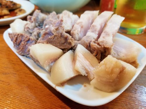 そしてお店の一押しメニュー、"ほっぺ"や"ホルモン"をお願いしました、、、"ほっぺ"はネギがタップリの酢醤油ダレにつけていただきます。。。ゼラチン質のプリプリとした食感、、、しかもコラーゲンもタップリっ!! うんうん、旨い旨い~☆