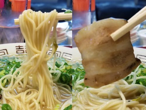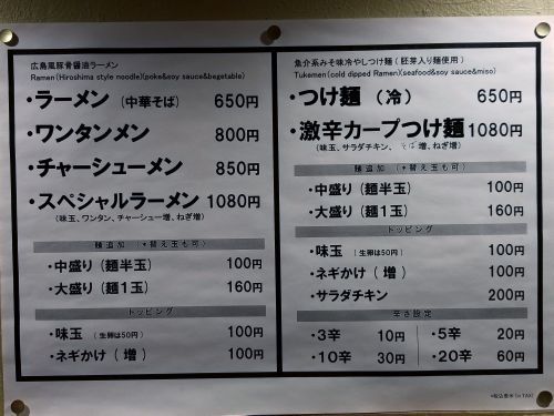 さぁ気になるお味です。。。まず麺は中細で、加水中~やや低めの手もみ風ウェーブほぼストレート、、、ゆで加減は固茹ででGOODでしょう!! そしてスープは広島らしい醤油豚骨で、コクもあるけどアッサリ味、、、そうコッサリという感じです。。。
