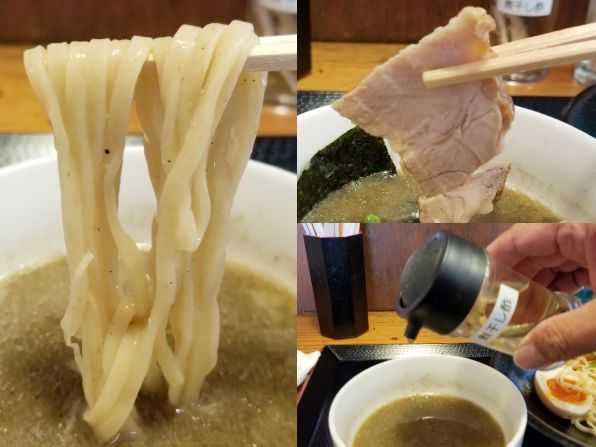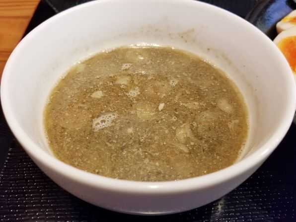 さぁ気になるお味です。。。まず麺は中太でやや加水多めの、緩やかウェーブ平打ちタイプ、、、程よくつけタレを絡め、ツルツルシコシコの食感がGOOD!!