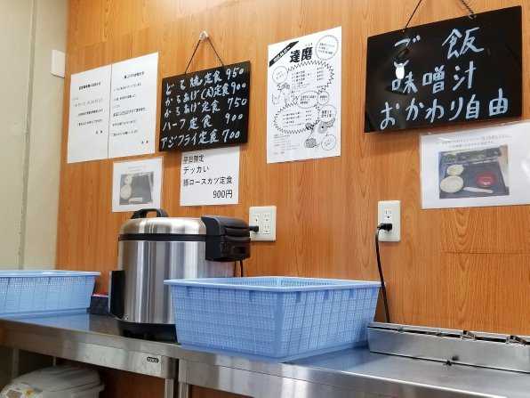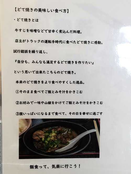 午後1時10分頃に到着し暖簾をくぐると、店内にお客さんはいません、、、ただ店主さんが、"今、ご飯を炊いているので10分位かかりますよ!!"と言いました。。。ははは、10分位なら全然問題ありません、、、我々はテーブル席に着き、私は"から揚げ"と"どて焼き"の"ハーフ定食"を、H.I.君は"トンカツ"が大好きなので"デッカい豚ロースカツ定食"をお願いしました。。。