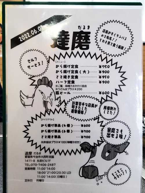 本日はお昼の時間に竹馬の友、H.I.君がランチに行こうとやって来ました、、、なのでちょっと足を延ばして、大西町の「達磨」さんを初訪問です。。。