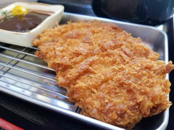また私の"から揚げ"と、H.I.君の"豚ロースカツ"を一つずつトレードしたのですが、この"豚ロースカツ"がGOOD!! 身・筋・脂の三位一体構造で、衣もサクつと揚がっています。。。うんうん、旨い旨い~☆