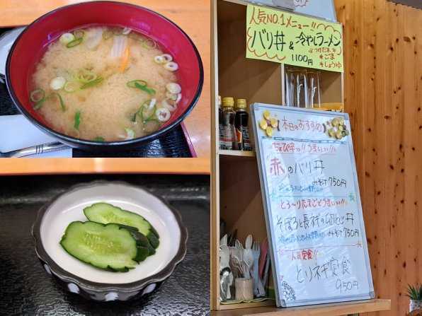 午後1時25分頃に入店すると、店内には4人のお客さんです、、、私は2人掛けのテーブル席に着き"本日のおすすめ"を確認。。。おやっ!? "赤のバリ丼"と書かれています、、、女将さんに聞いてみると、ピリ辛の" バリ丼 "だと言うことです。。。なのでそちらをお願いして、、、待つこと約8分でできあがりです。。。